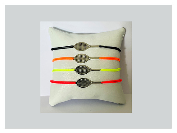 Raquette de tennis acier inoxydable sur cordon nœuds coulissants
